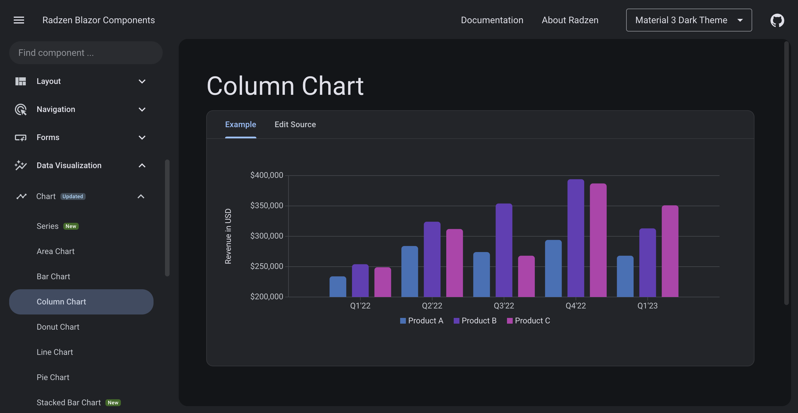 Choose from a range of free and premium themes, including Fluent UI, Material 2, and Material 3 themes.