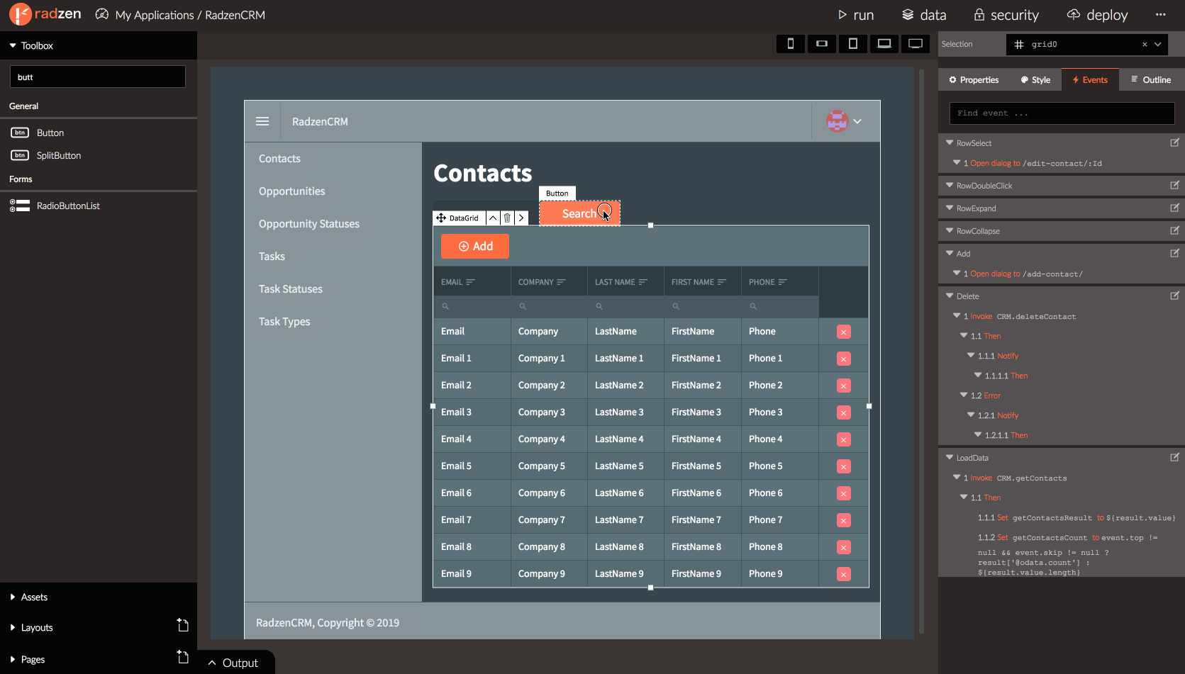 Open Radzen Blazor Studio docsIn this step from the CRM Application tutorial we will customize the automatically scaffolded CRUD pages.
