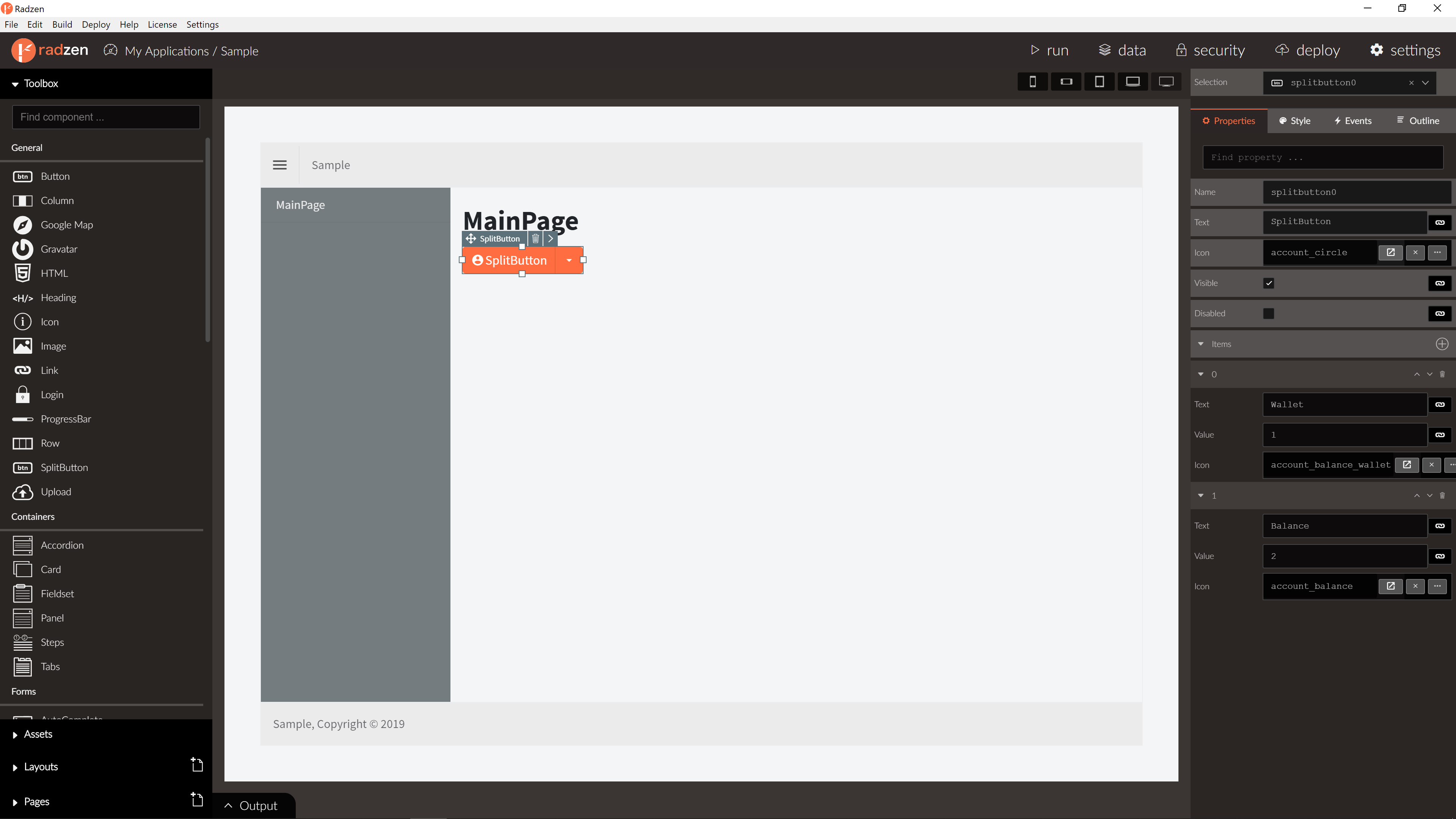 Open Radzen Blazor Studio docsThis guide demonstrates how to use the SplitButton component.